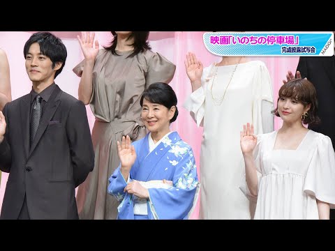 女優の吉永小百合さんが4月14日、東京都内で行われた主演映画「いのちの停車場」(成島出監督、5月21日公開)の完成披露試写会に、松坂桃李さん、広瀬すずさん、西田敏行さんらと登場した。