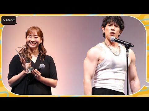 最後に改めて受賞の心境を聞かれると、庄司さんは「本当にうれしいです。これだけの皆さんの前で場違いかもしれませんけども、一言言わせてください」とジャケットを脱ぎタングトップ姿になると、妻の隣で「ミキティー! ジュエリー!」と喜びを爆発させた。