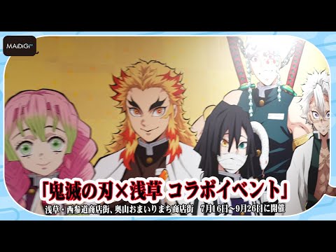 吾峠呼世晴(ごとうげ・こよはる)さんのマンガが原作のアニメ「鬼滅の刃」と東京・浅草がコラボしたイベント「鬼滅の刃×浅草 コラボイベント」が、7月16日~9月26日に開催される。浅草の西参道商店街、奥山おまいりまち商店街に竈門炭治郎(かまど・たんじろう)や煉獄杏寿郎(れんごく・きょうじゅろう)らキャラクターの陣旗が飾られる。