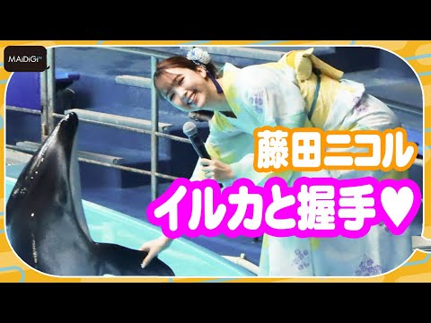 【動画】藤田ニコル、イルカの触り心地は「ツルツル」 久々の浴衣姿も披露