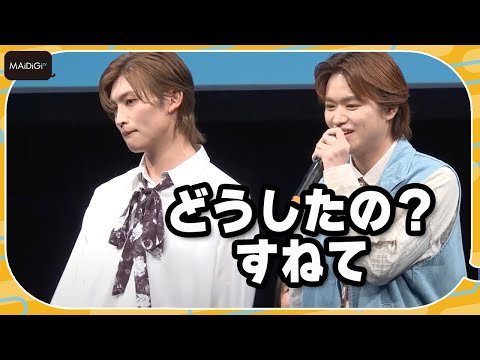 ダンスボーカルグループ「原因は自分にある。」の杢代和人さんと「IMP.」の松井奏さんがダブル主演を務める連続ドラマ「熱愛プリンス」(MBSほか)のイベントが3月4日、東京都内で行われ、杢代さんや松井さんのほか、共演の林芽亜里さん、大倉空人さん、「原因は自分にある。」の小泉光咲さん、「GENIC」の増子敦貴さん、「CLASS SEVEN」の大東立樹さん、「Lienel」の芳賀柊斗さんが登場した。