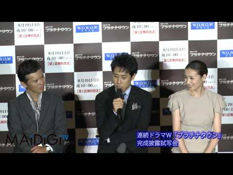 俳優の大泉洋さんが8月17日、WOWOWで19日にスタートする連続ドラマW「プラチナタウン」の東京都内で開かれた第1話完成披露試写会に、共演の檀れいさん、渡部篤郎さんとともに出席。