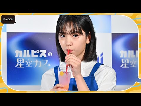 7月9日スタートの連続ドラマ「ちはやふる-めぐり-」(日本テレビ系、水曜午後10時)に主演する俳優の當真あみさんが3日、東京都内で行われた「『カルピス』の星空カフェ」PRイベントに登壇。自ら考案したドリンクやスイーツの実食レポートに挑戦した。