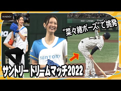 女優の菜々緒さんが8月1日、東京ドーム(東京都文京区)で開催された「サントリー ドリームマッチ2022」の始球式に登場した。