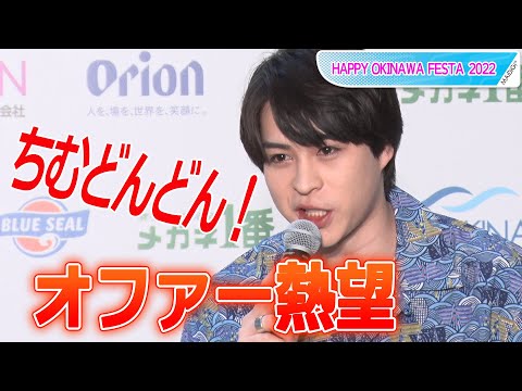特撮ドラマ「仮面ライダーゴースト」の仮面ライダーゴースト/天空寺タケル役などで知られる俳優の西銘駿さんと、「仮面ライダーエグゼイド」のポッピーピポパポ/仮野明日那役などで知られる女優の松田るかさんが5月13日、東京都内で開催された「HAPPY OKINAWA FESTA 2022」に登場した。