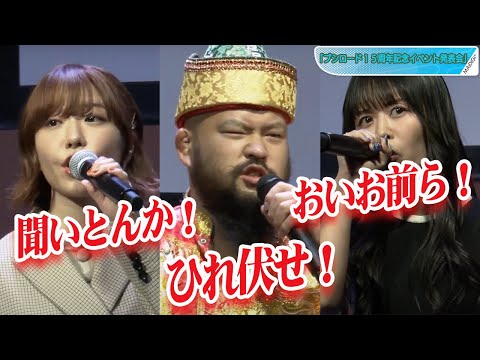 発表会には、声優の相羽あいなさん、愛美さん、伊藤昌弘さん、岩田陽葵さん、岩谷麻優さん、プロレスラーのグレート-O-カーン選手らが登場した。
