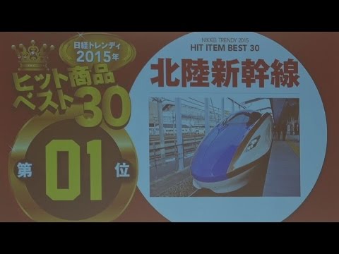 月刊情報誌「日経トレンディ」(日経BP社)が選ぶ「2015年ヒット商品ベスト30」が11月3日、発表され、今年3月の長野-金沢間の開業から半年間で約482万人が利用した「北陸新幹線」が1位に選ばれた。2位はお笑いコンビ「ピース」の又吉直樹さんの小説で芥川賞受賞作「火花」、3位は「インバウンド消費」だった。