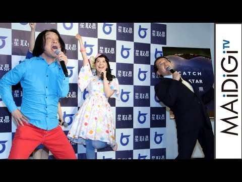 永野さんは「(持ちネタの)ラッセンの歌ではなかったのに、『イェェェイ!』をやったら、拍手が出た。これからは、星取県のために『イェェェイ!』をやります!」と開き直り、同席した同県の平井伸治知事と一緒に「空前絶後の星取県、イェェェイ!」とネタを連発。さらに篠原さんも、永野さんと平井知事を“with B”に見立てて「星取県の星は、35億」と、ブルゾンちえみさんのネタをアレンジして披露していた。