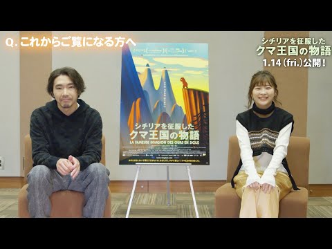 フランスとイタリア合作の劇場版アニメ「シチリアを征服したクマ王国の物語」(2022年1月14日公開)の日本語吹き替え版の声優を担当する柄本佑さん、伊藤沙莉さん、リリー・フランキーさんのインタビュー動画が11月29日、公開された。