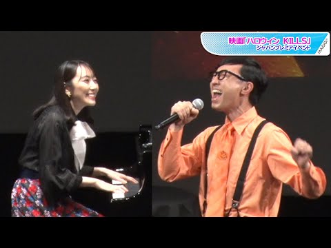 お笑い芸人のこがけんさん、元「AKB48」でタレントの松井咲子さん、元「NMB48」の内木志さんが10月19日、東京都内で行われた映画「ハロウィン KILLS」ジャパンプレミアイベントに登場した。