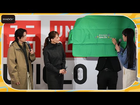 俳優の綾瀬はるかさんと松下洸平さんが10月23日、ユニクロの新たなグローバル旗艦店「UNIQLO UMEDA」(大阪市北区)で行われた記者説明会に登場した。