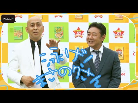 お笑いコンビ「錦鯉」の長谷川雅紀さん、渡辺隆さんが7月25日、北海道札幌市内で行われた「サッポロポテト50周年大感謝祭」に出席した。