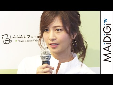 タレントの安田美沙子さんが10月15日、東京都内で行われた「新聞週間」キャンペーンで期間限定でオープンしたカフェ「しんぶんカフェ+me」の内覧会に登場した。白シャツにフロントにリボンをあしらったネイビーのベアトップワンピースを重ね着した秋らしいファッションで登場した。