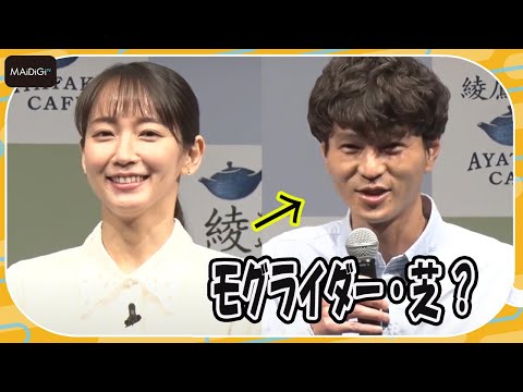 2人は4月4日から放送される「綾鷹」のカフェメニュー「綾鷹カフェ」シリーズの新CM「新装開店」編で初共演した。吉岡さんはカフェを訪れる客、芝さんはカフェのマスター役を演じる。発表会には、CMに出演するお笑いコンビ「モグライダー」のともしげさんも出席した。