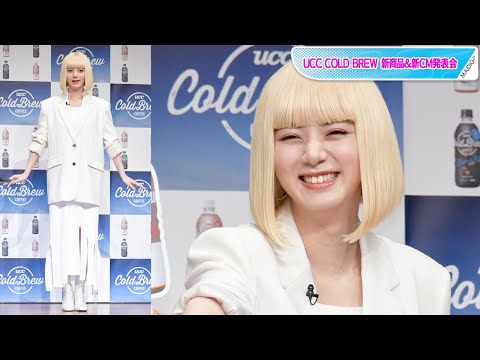 女優の池田エライザさんが3月15日、東京都内で行われたコーヒー飲料「UCC COLD BREW BLACK」の新商品および新CM発表会に出席した。白ワンピースに白ジャケット、金髪のおかっぱウィッグという、同社のCMと同じ衣装。ワンピースはスリットが複数入ったデザインで美脚をちら見せしていた。