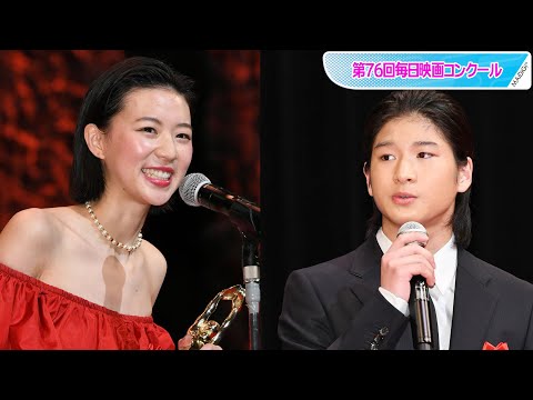 「第76回毎日映画コンクール」(毎日新聞社、スポーツニッポン新聞社主催)の表彰式が2月15日、めぐろパーシモンホール(東京都目黒区)で開催され、映画「茜(あかね)色に焼かれる」(石井裕也監督)でスポニチグランプリ新人女優賞を受賞した片山友希さん、同男優賞を受賞した和田庵さんが登壇した。