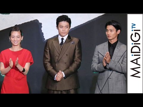 ジャパンプレミアには、小栗さんのほか、沢村の妻・遥役の尾野真千子さん、沢村を慕う新米刑事役の野村周平さん、丸山智己さん、田畑智子さん、松重豊さんが出席。カエル男を妻夫木聡さんが演じたことも発表され、妻夫木さんも出席した。
