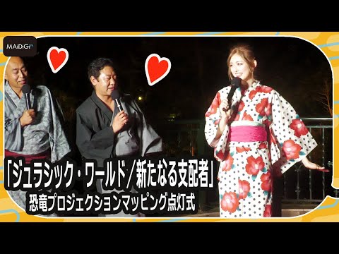 ギャルモデルのゆうちゃみさんが8月22日、東京都内で行われた映画「ジュラシック・ワールド/新たなる支配者」の恐竜プロジェクションマッピング点灯式に、お笑いコンビ「錦鯉」の長谷川雅紀さん、渡辺隆さんとともに登場した。