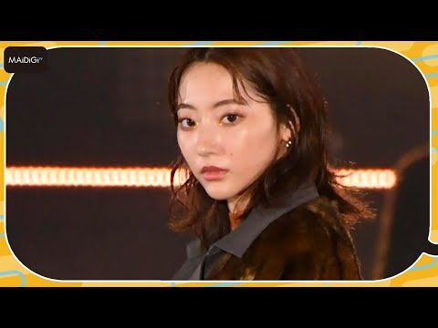 同コーデで登場したのはファッションブランド「MURUA(ムルーア)」のステージ。ファー付きのロングコートを着て大人のムードを醸し出していた。