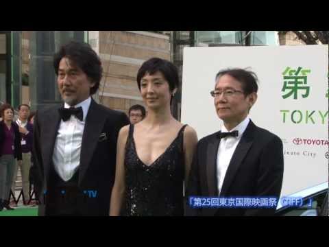 特別招待作品「終の信託」の周防正行監督、女優の草刈民代さん、俳優の役所広司さんのグリーンカーペットの様子。(毎日新聞デジタル)