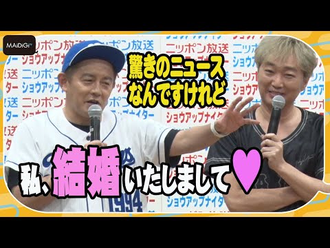 お笑いコンビ「スピードワゴン」の井戸田潤さん、小沢一敬さんが9月12日、東京都内で行われた「ラジオペナントレースNEXT powered by ニッポン放送ショウアップナイター」制作発表記者会見に登場。モデルの蜂谷晏海(はちや・あみ)さんと結婚したことを発表した井戸田さんは、記者からの質問に答えた。
