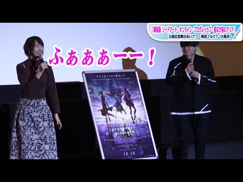 川原礫(れき)さんの人気ライトノベル「ソードアート・オンライン(SAO)」シリーズの「ソードアート・オンライン プログレッシブ」が原作の新作劇場版アニメ「劇場版 ソードアート・オンライン -プログレッシブ- 星なき夜のアリア」(河野亜矢子監督)の公開記念舞台あいさつが10月30日、梅田ブルク7(大阪市)で開催され、声優の松岡禎丞さん、戸松遥さんが登場した。