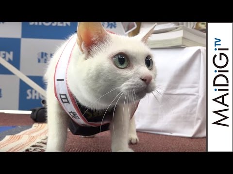 人気時代劇シリーズ映画「猫侍」で、白ネコの玉之丞として出演した人気のタレント猫、あなごちゃんが5月22日、東京・秋葉原の「書泉グランデ」の一日店長に就任し、撮影会を行った。