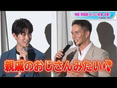 俳優の市原隼人さんが5月2日、東京都内で行われた、主演映画「劇場版 おいしい給食 卒業」の完成披露上映会に登場。共演の佐藤大志さんへの思いを語った。