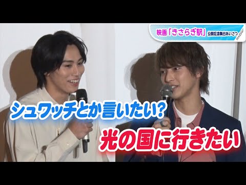 特撮ドラマ「魔進戦隊キラメイジャー」でキラメイイエロー/射水為朝を演じた木原瑠生さんと「ウルトラマントリガー NEW GENERATION TIGA」でマナカ ケンゴを演じた寺坂頼我さんが6月4日、東京都内で行われた映画「きさらぎ駅」(永江二朗監督)の公開記念舞台あいさつに登場した。