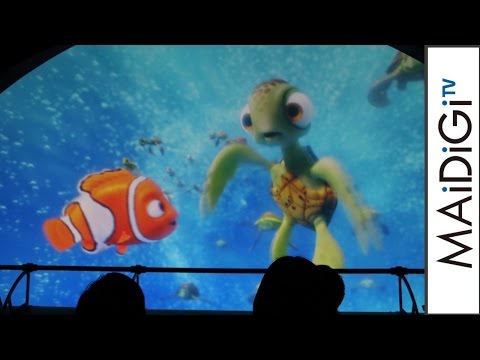 同アトラクションはTDSのポートディスカバリーに開設。乗り込む魚型潜水艇「シーライダー」は、同エリアにある海洋生物研究所の科学者たちが電気を通すと縮小する特性がある素材「チヂミニウム」を開発し、これを使って作られたという設定で、中に人間を乗せた状態で魚サイズに縮み、さらに、人工フィッシュ知能を搭載し、自動運転で魚たちと一緒に泳ぎ、行動できるという。海中に潜り、魚サイズに縮んだシーライダーは、ニモやドリーなどさまざまな海洋生物たちと出会い、海の冒険へ連れて行ってくれる。