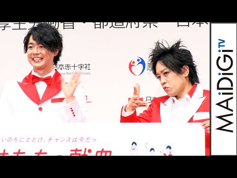 お笑いコンビ「ぺこぱ」のシュウペイさん、松陰寺太勇さん、タレントの山之内すずさんが1月12日、東京都内で行われた日本赤十字社の「令和3年『はたちの献血』キャンペーン記者発表会」に出席した。