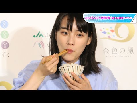 女優で「創作あーちすと」ののんさんが9月27日、東京都内で行われた2021「いわて純情米」新CM発表イベントに登場。新米の試食では、うなり声を上げながら食リポも行った。