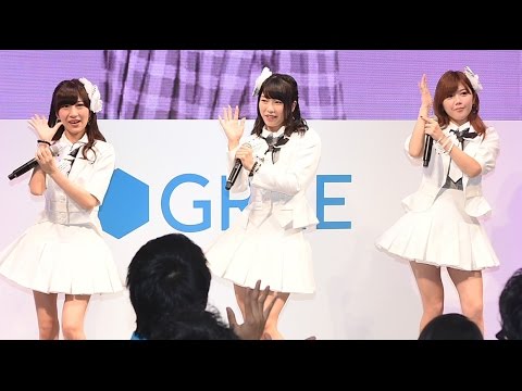 人気アイドルグループ「AKB48」の石田晴香さん、横山由依さん、宮崎美穂さんが9月19日、幕張メッセ(千葉市美浜区)で開催中の国内最大のゲーム展示会「東京ゲームショウ2014」で、グリーの人気ゲーム「AKB48ステージファイター」のイベントに登場した。