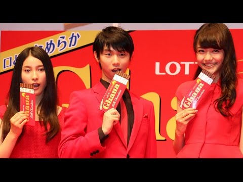 女優の土屋太鳳さんが8月27日、東京都内で行われたロッテのイベント「ロッテ ガーナチョコびらきセレモニー2014」に、冬季五輪フィギュアスケートで金メダルを獲得した羽生結弦選手と初対面。イベントにはモデルの松井愛莉さんも出席した。