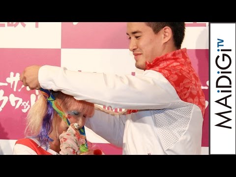 イベントでは、19日の敬老の日にちなんで、ベイカー選手が小林さんに金メダルをかけてあげる一幕も。ベイカー選手が「おばあちゃん、家族の応援が(リオ五輪で)支えになりました。東京五輪を目指して頑張ります。おばあちゃんはいつまでもおしゃれで長生きしてください」と言うと、小林さんから「まだまだ頑張ってもらわないと困る。これからも(東京五輪を目指して)頑張ってください」とはっぱをかけられた。また、イベントには、お笑いタレントのなだぎ武さんも劇中に登場するジョーカーの格好に扮(ふん)して出席した。
