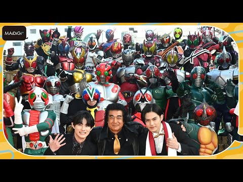 セレモニーには、「東京スペシャルアンバサダー」を務める「仮面ライダーギーツ」(テレビ朝日系)の主人公の仮面ライダーギーツ/浮世英寿(うきよ・えーす)を演じている簡秀吉さんと、「仮面ライダーリバイス」で主人公の仮面ライダーリバイ/五十嵐一輝役を演じた前田拳太郎さん、「レジェンドアンバサダー」を務める仮面ライダー1号/本郷猛を演じた藤岡弘、さんが出席した。初代の仮面ライダー1号から、平成最初の仮面ライダークウガ、令和最初の仮面ライダーゼロワン、放送中の仮面ライダーギーツまで、歴代38人の“仮面ライダー”が勢ぞろいした。