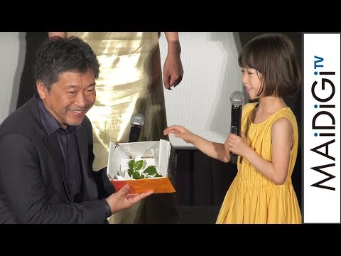 【動画】是枝監督、佐々木みゆの手作り“パルムドール”に感激 映画「万引き家族」公開記念舞台あいさつ2