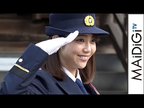 女優の山谷花純さんが1月24日、帝釈天題経寺(東京都葛飾区)で行われた「文化財防火デー消防演習」で一日消防署長を務めた。