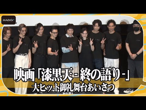 俳優の荒木宏文さんが7月10日、東京都内で行われた映画「漆黒天 -終の語り-」の大ヒット御礼舞台あいさつに共演の松田凌さん、長妻怜央さん、 梅津瑞樹さん、小島藤子さん、松本寛也さん、小澤雄太さん、 鈴木裕樹さん、脚本を担当した末満健一さんとともに登場した。