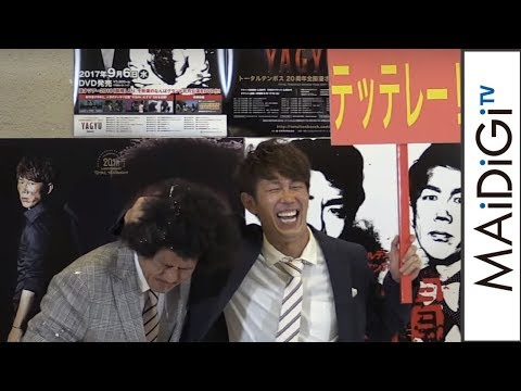お笑いコンビ「トータルテンボス」が8月23日、東京都内で行われた芸歴20周年記念「20個のいたずら」記者会見に出席。会見中、大村朋宏さんが藤田憲右さんに“20個のいたずら”を仕掛けたほか、9月9日のくまもと森都心プラザ(熊本市西区)を皮切りに、全国19会場で20公演を行う全国ツアー「YAGYU」の開催などについても告知した。