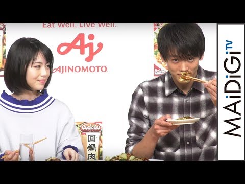 【動画】竹内涼真&浜辺美波、ホイコーロー試食にご満悦 「Cook Do」新CM発表会4
