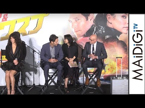 スーツを身に着けた途端1.5センチのミニチュアサイズになるというマーベル・スタジオの“異質”のヒーロー「アントマン」シリーズの新作映画「アントマン&ワスプ」(ペイトン・リード監督、2018年8月31日公開)のスペシャル・ファンミーティングが8月21日、東京都内で開催され、アントマン役のポール・ラッドさんやワスプ役のエバンジェリン・リリーさん、リード監督が登場した。