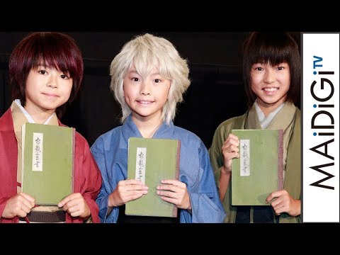 この日、3人は役衣装で登場し、銀時役の悠太君は「銀髪にすると銀時になった気分がしてうれしいです」とにっこり。桂役の壮志君は「(撮影していた)去年の夏より6センチくらい背が伸びたので、大丈夫かなと思ったんですが、衣装を着られてよかったです」と話し、高杉役の統眞君は「久しぶりにこの衣装を着られて懐かしい。よくお仕事でカツラをかぶるんですが、かっこいいことが少ないので、このカツラは気に入ってました」と語った。