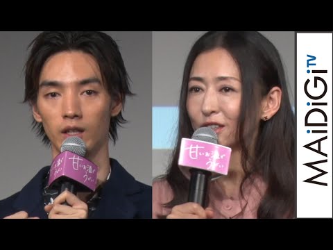 女優の松雪泰子さんが9月26日、東京都内で行われた主演映画「甘いお酒でうがい」(大九明子監督)の公開記念舞台あいさつに共演の清水尋也さん、原作・脚本を務めたお笑いコンビ「シソンヌ」のじろうさん、大九監督とともに登場した。