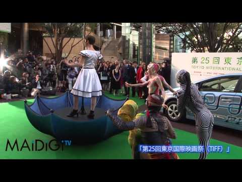 「シルクドソレイユ3D」のオフィシャル・ナビゲーターの上戸彩さんらのグリーンカーペットの様子。(毎日新聞デジタル)