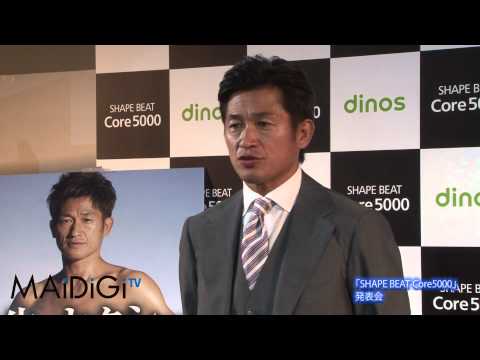 キング・カズことサッカーJ2横浜FCの三浦知良選手が、通信販売のディノスで大ヒット中の家庭用EMSマシンの最新モデル「SHAPE BEAT Core5000」のイメージキャラクターに選ばれ、都内で行われた発表会に登場。