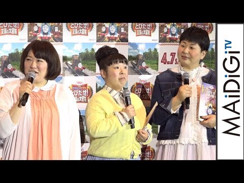 お笑いトリオ「森三中」の黒沢かずこさん、村上知子さん、大島美幸さんが3月24日、東京都内で行なわれた「映画 きかんしゃトーマス とびだせ!友情の大冒険」(2018年4月7日公開)の完成披露舞台あいさつに出席。