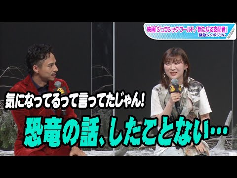 女優の伊藤沙莉さんが6月13日、東京都内で行われた映画「ジュラシック・ワールド/新たなる支配者」(コリン・トレボロウ監督、7月29日公開)の緊急シンポジウムに出席。満島真之介さんに促され、恐竜の専門家として出席した恐竜くんに質問した。
