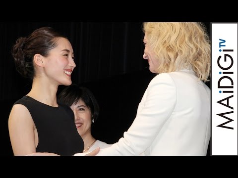 ハグをして再会を喜んだ2人。それぞれの第一印象を聞かれると、綾瀬さんは「パワフルでハッピーなオーラがすごい。お話させていただくと、スマートでかっこよかったり、チャーミングだったり、ますます好きになりました」、ブランシェットさんは「とても大きなエネルギーを感じました。また、謙虚でいらっしゃる姿が印象的でした」と語った。