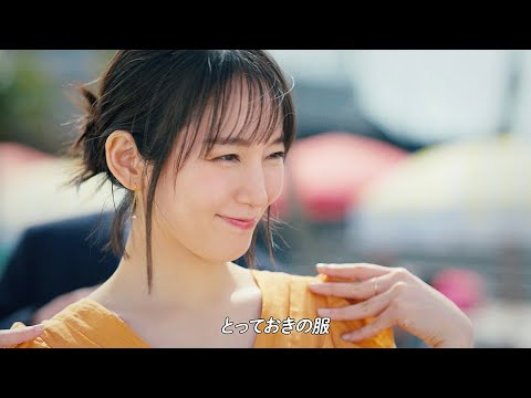 今回のCMは、夏の訪れを感じさせるバカンスのシチュエーションで、新しい洋服に着替えた時のワクワクする気持ちを表現。海の見えるリゾートホテルの一室で、待ち焦がれた夏のバカンスに心を弾ませながら、ウキウキと新しい洋服を取り出す2人。鮮やかな新しいワンピースに着替え、ホテルのスタッフから褒められてうれしそうな吉岡さん。その様子を見て思わず焦った板垣さんがその場から吉岡さんを連れ出し、最後は仲むつまじく歩き出す……というストーリー。